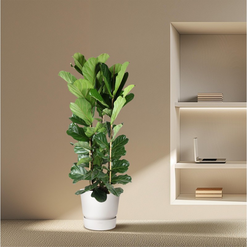 • Ficus Lyrata, also known as the "Violin Leaf Plant," is a beautiful and stately houseplant that beautifies any indoor space with its lush green leaves in the shape of a violin. With its striking leaf pattern and robust stem, this plant adds a touch of natural grandeur and contemporary style to your home. Ficus Lyrata thrives best in bright, indirect light and requires minimal maintenance, making it ideal for beginners and experienced plant lovers alike. Besides its decorative value, this plant contributes to a healthier living environment by purifying the air. Add a touch of green splendour and timeless beauty to your interior with this stunning, visually impressive plant.