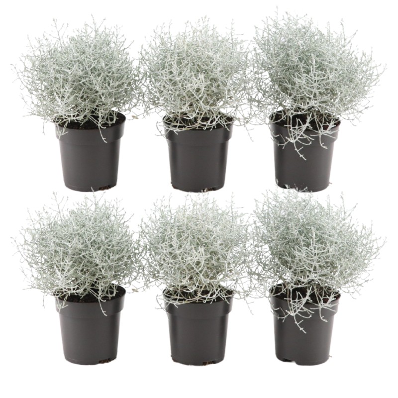 Discover the unique charm of Calocephalus – also known as the silver bush – with this set of six elegant plants. These decorative beauties stand out with their silvery-grey branches and fine, almost graphic structure.