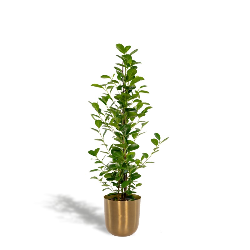 A real show-off, this Ficus Microcarpa Moclame! With its green oval leaves, this Ficus has a peaceful appearance. The Ficus grows up against a stick to support the plant.