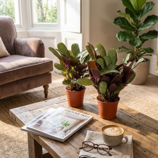 • The Ctenanthe Amagris is an elegant houseplant distinguished by its oval, grey-green leaves with dark veins and a purple underside. Like the Calatheas, this is a 'Prayer Plant' whose leaves fold up in the evening. The plant thrives best in a location with plenty of indirect light or light shade. Keep the soil consistently lightly moist, but avoid the roots sitting in water. High humidity is important to prevent leaf edges from curling. Pot diameter: 14 cm, Height: 35 - 40 cm.