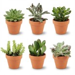 • A varied mix of succulents, each placed in an attractive terracotta pot. These plants are ideal for the forgetful waterer, as they store water in their leaves. They are extremely low-maintenance and require a lot of light, preferably direct sunlight. Only water when the soil has completely dried out. The terracotta pots help to regulate excess moisture. Pot diameter: 8.1 cm, Height: 5 - 10 cm.