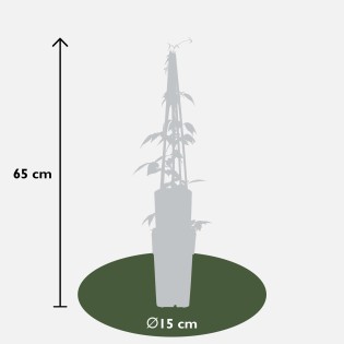 • Clematis Montana Grandiflora' is a small-floweringbut richly flowering clematis that produces an abundance of white, fragrant flowers in the spring. The clematis grows quickly and produces more and longer tendrils than most clematis. The climbing plant is perfect for covering a pergola, but it also does well along a wall, fence or rack. It does need some help in climbing, as it does not attach itself. You can therefore lead it around a wire or mesh. A beautiful and striking feature is that it has a leaf that colours in autumn. Cold temperatures are not a problem for the Hardy climber.