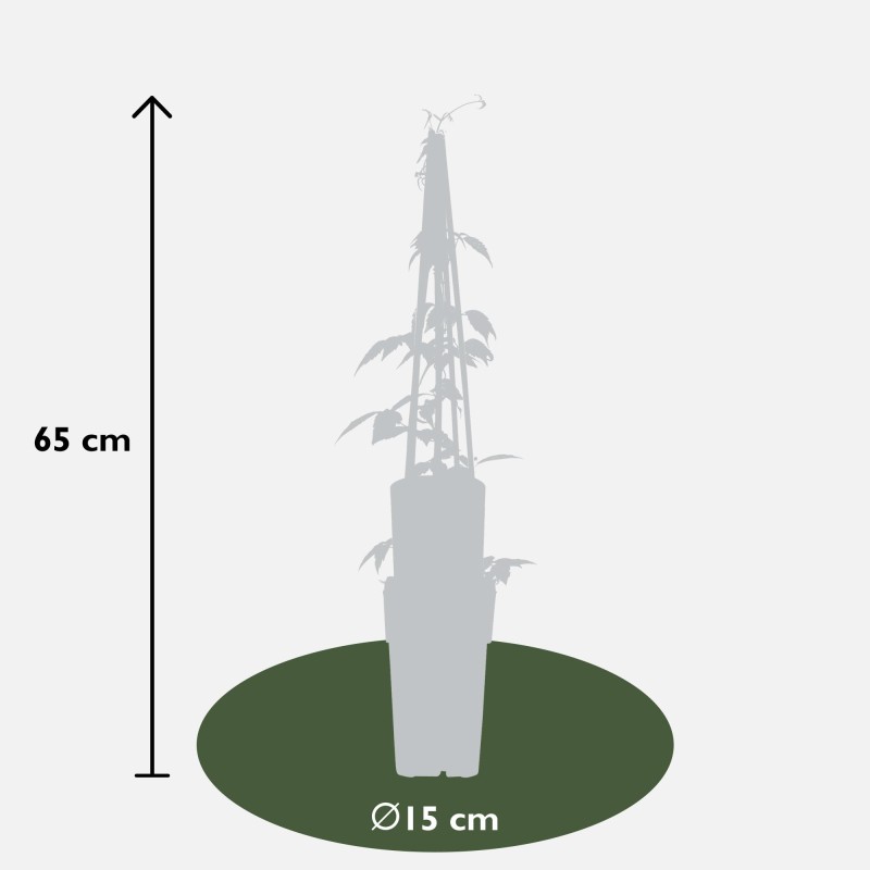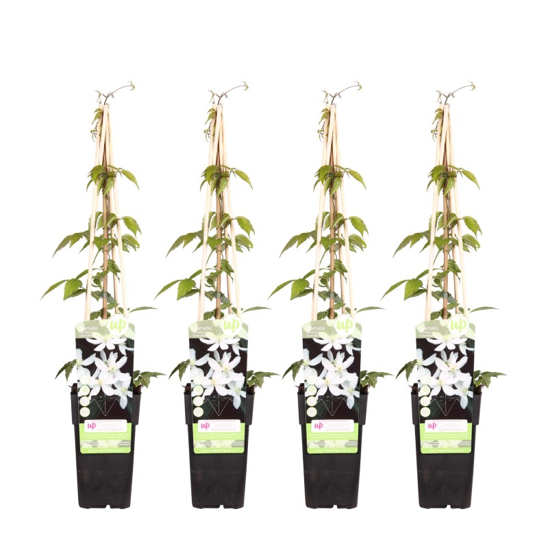 • Clematis Montana Grandiflora' is a small-floweringbut richly flowering clematis that produces an abundance of white, fragrant flowers in the spring. The clematis grows quickly and produces more and longer tendrils than most clematis. The climbing plant is perfect for covering a pergola, but it also does well along a wall, fence or rack. It does need some help in climbing, as it does not attach itself. You can therefore lead it around a wire or mesh. A beautiful and striking feature is that it has a leaf that colours in autumn. Cold temperatures are not a problem for the Hardy climber.