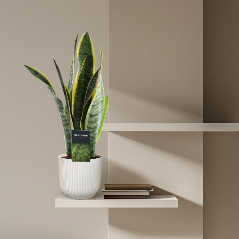 • Appearance of the plant: The Sansevieria, also known as Snake Plant, has stiff, sword-like leaves that range from dark green to gray-green. The leaves often feature light stripes or a yellowish edge, giving it a modern and stylish look.
