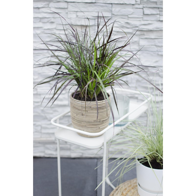 • The 'Pennisetum 'Summer Samba'' should not be missing from your terrace. It is an ornamental grass with upright growth and narrow leaves that are reddish-green in colour. Whether used as a border plant or alone in a decorative pot, it provides a nice contrast to other flowering shrubs. This is due to its beautiful silver-purple fluffy plumes, which look just like brushes.