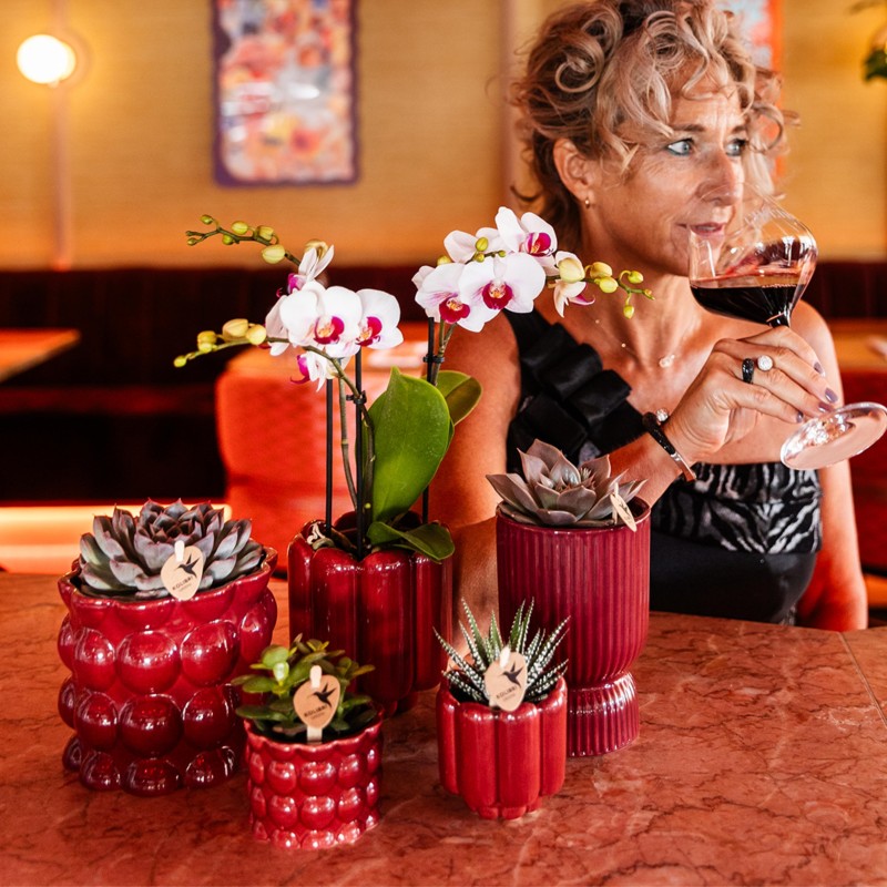 Via a specially developed shipping box, which ensures that plants and pots do not break during shipment.