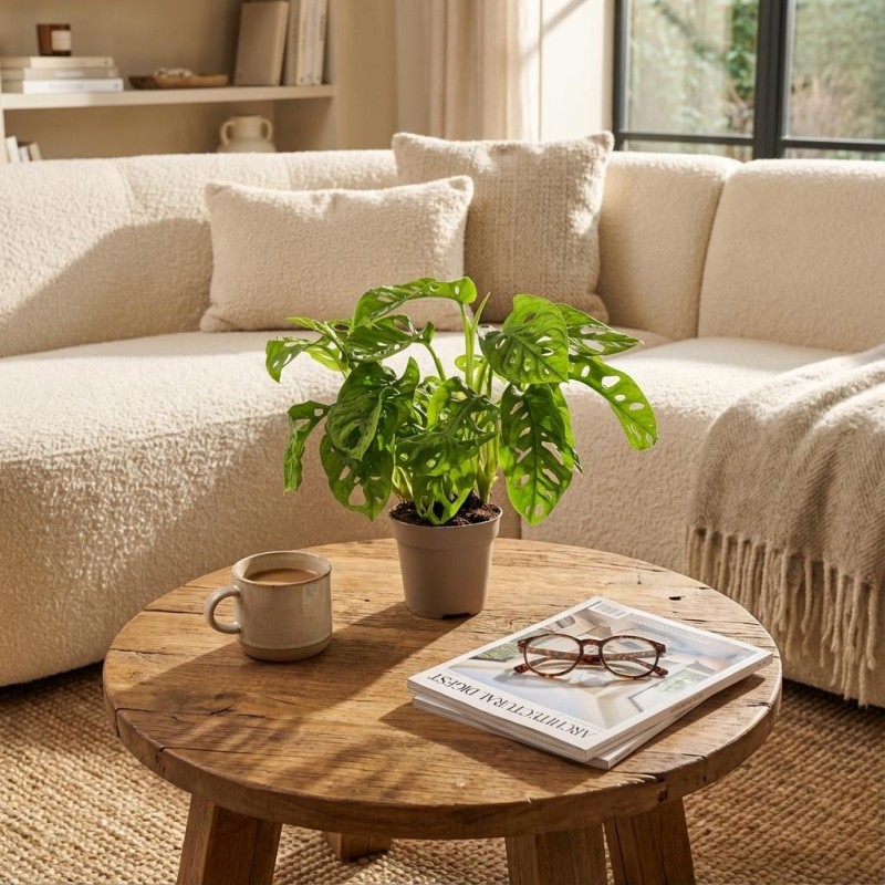 • The Monstera Adansonii, better known as the Monkey Mask, is a trendy houseplant distinguished by its unique leaves full of holes. This is an easy climbing or hanging plant that provides a playful, tropical effect. The Monkey Mask thrives in a bright spot, but avoid direct sunlight. Keep the soil lightly moist and only water when the top layer feels dry. The plant enjoys high humidity; regular misting is recommended. Pot diameter: 12 cm, Height: 25 - 35 cm.