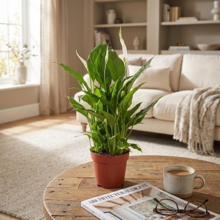 • The Spathiphyllum is a popular, air-purifying houseplant known for its elegant, white 'flowers' (actually spathes). This plant is very vocal about its needs: the leaves droop when it is thirsty. The Peace Lily thrives well in (semi)shade, avoid bright sunlight. The soil must be consistently moist; this plant requires a lot of water. Regular misting encourages flowering. Pot diameter: 12 cm, Height: 35 - 40 cm.