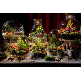 With a Christmas terrarium, you bring more than just festive décor into your home or “Christmas office.” This self-sustaining mini ecosystem, also known as a terrarium or bottle garden, combines lush greenery with cozy winter charm, creating a magical atmosphere for the holidays. Perfect for anyone who loves Christmas and nature but prefers low maintenance, the terrarium regulates its own humidity and needs watering only once or twice a year.