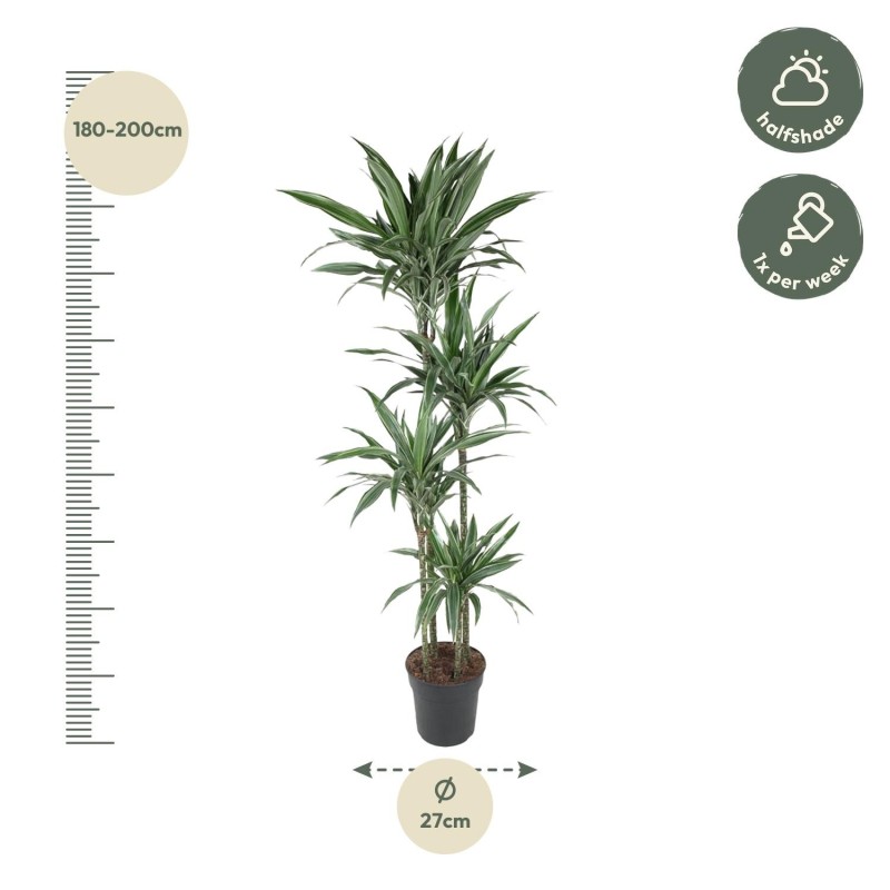 • Dracaena Warneckei, the "Warneckei Dragon Plant," is a timeless and elegant choice for any indoor space. With its slender, upright stems and graceful green leaves with white streaks, this plant adds a touch of natural beauty and sophistication to your interior. Dracaena Warneckei thrives in different light conditions and requires minimal maintenance, making it ideal for beginners and experienced plant lovers alike. This plant not only adds to the aesthetics of your space but also improves air quality, resulting in a serene, healthy atmosphere in your home. Add a touch of timeless elegance and soothing charm to your living space with this beautiful, visually soothing plant.