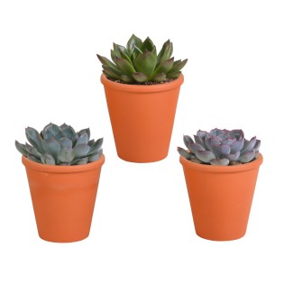 • The Echeveria mix is a beautiful one! This mix consists of 3 Echeverias that differ in color. The Echeverias come directly from the grower and are therefore of the highest quality. This mix of beauties comes in a white pot.