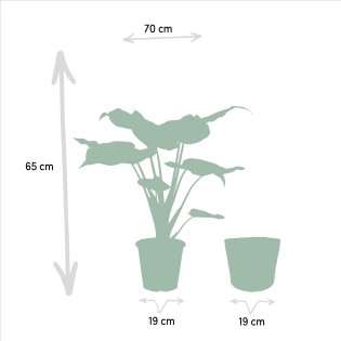 This houseplant mix creates a green vibe in your home. The Alocasia Cucullata and the Alocasia Wentii are the ideal ingredients for a tropical cocktail.