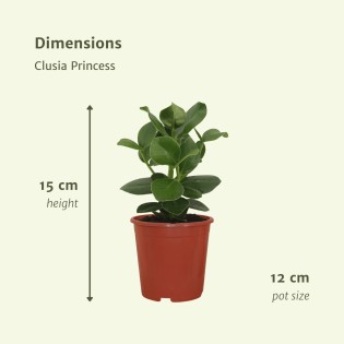 • The Clusia Princess thrives best in a bright spot with indirect sunlight but can also tolerate a partially shaded area. It is perfect for indoor spaces such as living rooms and offices.
