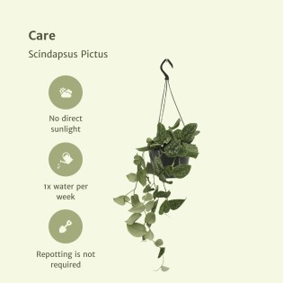 • The Scindapsus Pictus thrives in indirect sunlight or partial shade. Ideal for indoor spaces such as living rooms, offices, or kitchens.
