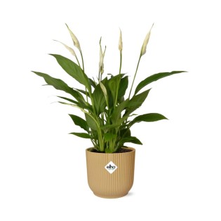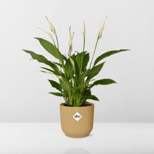 To take care of a Spathiphyllum, it's important to place it in a spot with half-shade, as it prefers indirect sunlight. Watering once a week is sufficient, making sure not to overwater, as this can lead to root rot. The Peace Lily thrives in well-draining soil, preferably a mix of potting soil and perlite. As for fertilizing, it's recommended to use a balanced, water-soluble fertilizer once a month during the growing season (spring and summer), following the instructions on the product. With these care tips and an ornamental pot, your Spathiphyllum will thrive and beautify your space.