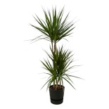 • The Dracaena Marginata is an elegant plant with slender, sword-shaped leaves that are green with thin red edges. The leaves grow on long, thin stems that contribute to the plant's graceful and modern appearance.