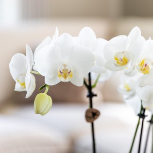 The orchids come with 3 or 4 sturdy stems, depending on current availability. Since we work with living products, there may be slight variations in the number of stems or flowers.