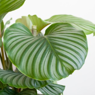 • The Calathea orbifolia is a beautiful green houseplant with air purifying properties! Her impressive, large leaves are bright green with mint green stripes, which gives a popping effect. This plant is a visual spectacle with its striking colors! The Calathea is very popular and can often be found in home furnishings magazines and on social media. An interesting fact is that the leaves of the Calathea close at night and open again in the morning! Sometimes you hear the rustling sound of this houseplant in the evening. The Calathea originally comes from the South American jungle, where it thrives in moist and shady environments. Due to the size and strength of the leaves, they are occasionally used as packaging material. In South America, fish products are sometimes wrapped in the leaves of the Calathea. However, we like to let it shine on the windowsill! The Sofia plant pot is made of seagrass. This natural material is dried and braided, resulting in a beautiful plant pot. The Sofia plant pot is made of seagrass that has been dried and braided. The pot has a plastic inlay, so that no water can get through. The beige color gives this pot an extra natural look, which is beautiful in combination with green houseplants.