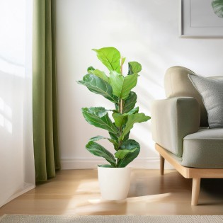 Ficus Lyrata With Viber Pot White - 80Cm - Ø21