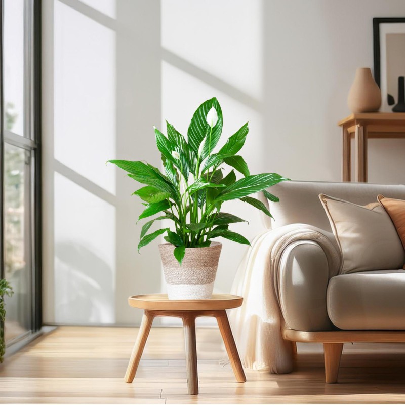 • The Spathiphyllum Sweet Lauretta, better known as the Peace Lily or Peace Lily, is a charming flowering houseplant known for its striking white flowers. These flowers resemble white flags, which explains the nickname Peace Lily, and are shaped like a spoon, which justifies the name Peace Lily. This houseplant is native to the tropical rainforests of South America, where it grows in the shady undergrowth. This means that the Spathiphyllum Sweet Lauretta is used to less direct sunlight, which makes it ideal for indoors. Caring for this houseplant is quite simple, making it an excellent choice for both novice and experienced plant enthusiasts. It prefers a humid environment and regular watering, but is otherwise undemanding. This makes the Spathiphyllum a popular choice for many households. The Lisbon plant basket is a stylish, more sustainably produced jute basket. With its natural tones, this plant basket can be easily combined with all kinds of houseplants. This Terima Kasih plant basket is produced more sustainably and responsibly. The basket is made of jute, a biodegradable plant, which is woven by hand. No fossil fuels are used in production. Terima Kasih ensures that people in Asia can get a good job. Employees are provided with work all year round, receive two fresh meals a day and mothers have adjusted working hours.