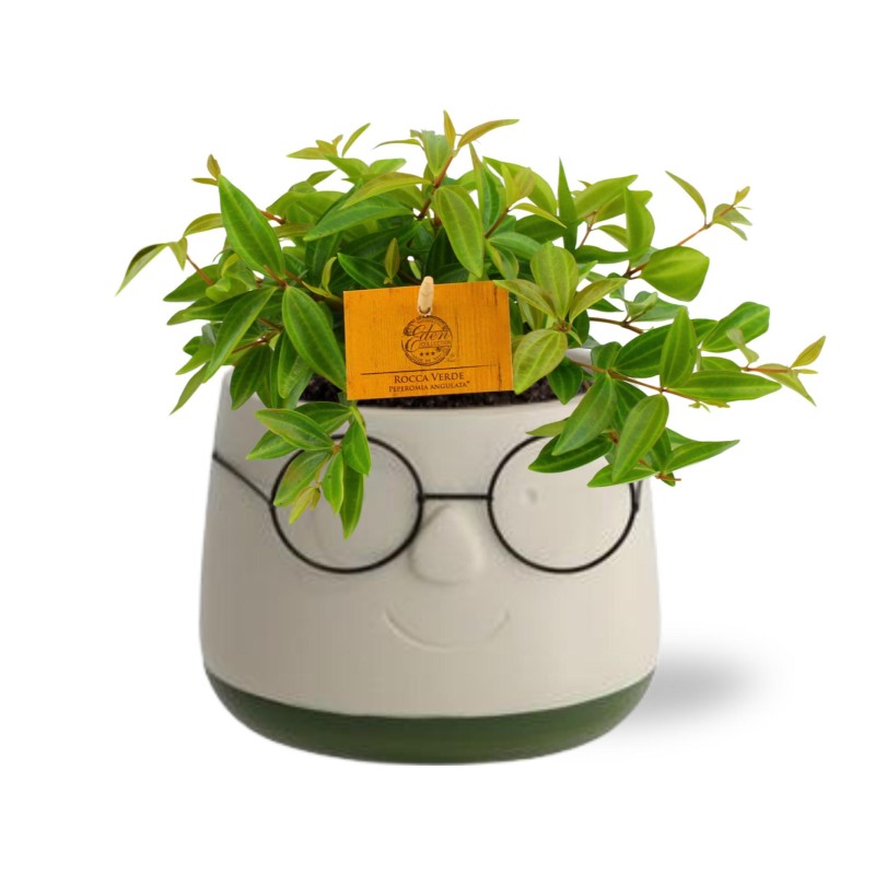 • Peperomia Ang. Rocca Vivace - Ø11Cm - ↕15Cm + Pot Bril D12X9Cm - Green