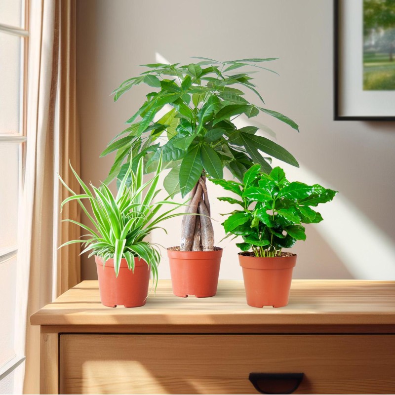 • This Animal Friendly Plant Box consists of a mix of 3 green houseplants. These non-toxic houseplants have different sizes and leaf colors. All plants in this box are non-toxic to cats, dogs or other pets. Also suitable if you have small children. You can bring these houseplants into your home without any worries! The Animal-Friendly Plant Box (mix) consists of the following houseplants: Pachira Aquatica - pot size 12cm (35 cm high) Chlorophytum Comosum - pot size 12cm (25 cm high) Coffea Arabica - pot size 12cm (20 cm high)