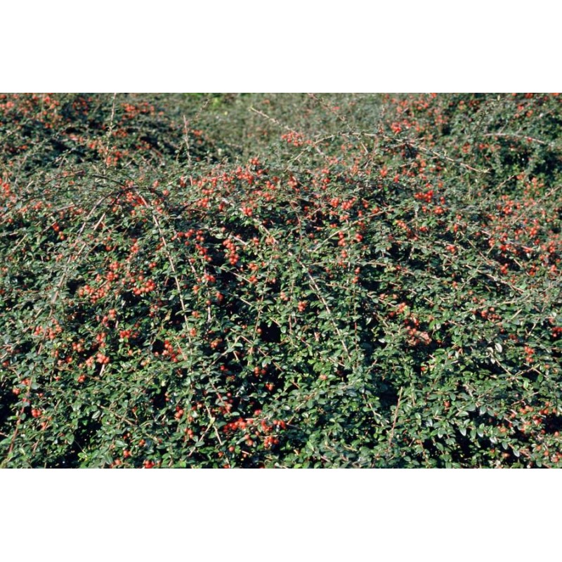 The **Cotoneaster suecicus 'Coral Beauty'** is a hardy, low-growing shrub with dense foliage. It features glossy green leaves and delicate white flowers in spring, followed by vibrant orange berries in autumn and winter. Ideal as ground cover or a low hedge, it also attracts birds who love the berries. A low-maintenance choice for adding color to your garden!