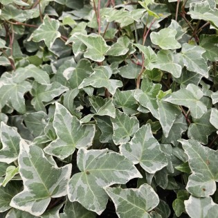 Hedera helix 'Glacier' is a versatile ivy with striking green leaves and silver-white veins. Ideal for hedges, borders, or ground cover. This fast-growing plant thrives in any soil, in both sun and shade. Easy to prune and low-maintenance, making it perfect for any garden!