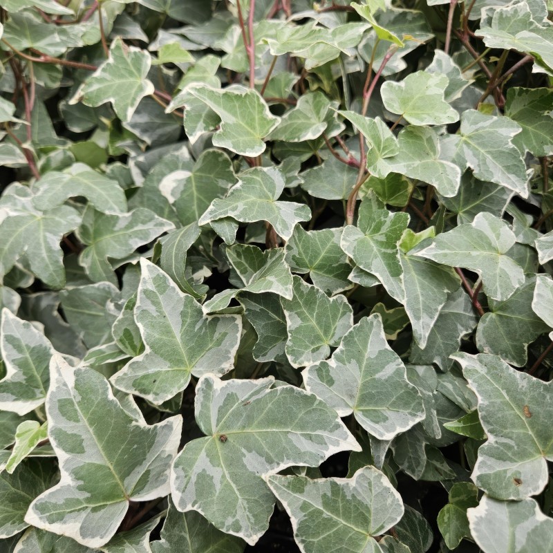 • Hedera helix 'Glacier' is a versatile ivy with striking green leaves and silver-white veins. Ideal for hedges, borders, or ground cover. This fast-growing plant thrives in any soil, in both sun and shade. Easy to prune and low-maintenance, making it perfect for any garden!