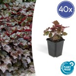 **Heuchera ‘Palace Purple’** is a must-have for any shade garden! This stunning perennial features striking dark purple-red leaves that provide beautiful contrast. From early July, it blooms with elegant white plumes, attracting bees and butterflies. Easy to care for, it’s perfect for borders or pots. Add a touch of color and flair to your garden with Heuchera ‘Palace Purple’!