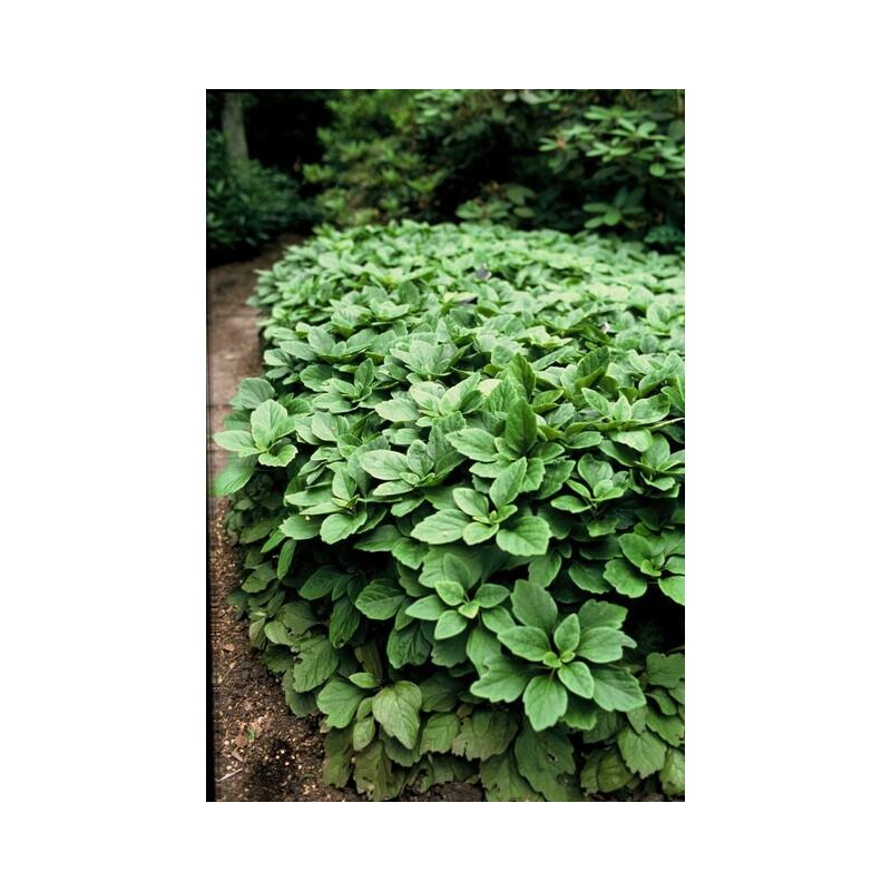 • Pachysandra terminalis, also known as Japanese spurge, is an ideal evergreen ground cover for shaded spots in the garden. Its dense, dark green foliage forms a lush carpet that suppresses weeds and provides year-round color and texture. Low-maintenance and easy to grow, it thrives in rich, moist soil, making it perfect for shaded gardens and borders.
