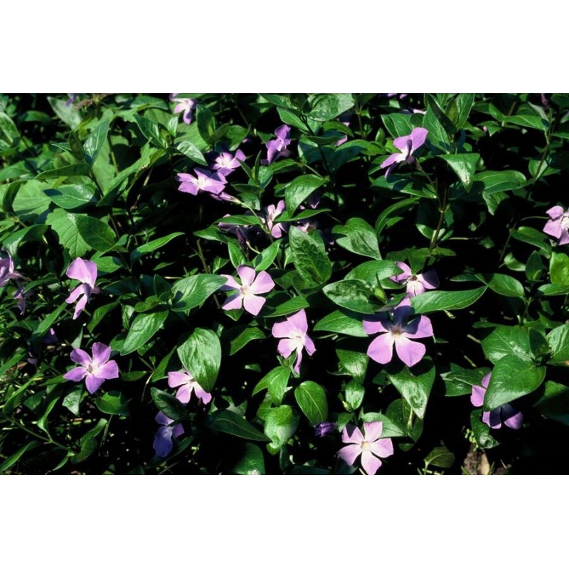 **Vinca major** – also known as Greater Periwinkle – is an evergreen ground cover that stands out for its resilience and low-maintenance nature. This plant has glossy, dark green leaves and produces beautiful purple-blue flowers from early spring through summer. Vinca major is ideal for shady spots and helps suppress weed growth, making it perfect for borders and underplanting. It’s easy to care for and hardy, offering year-round greenery.