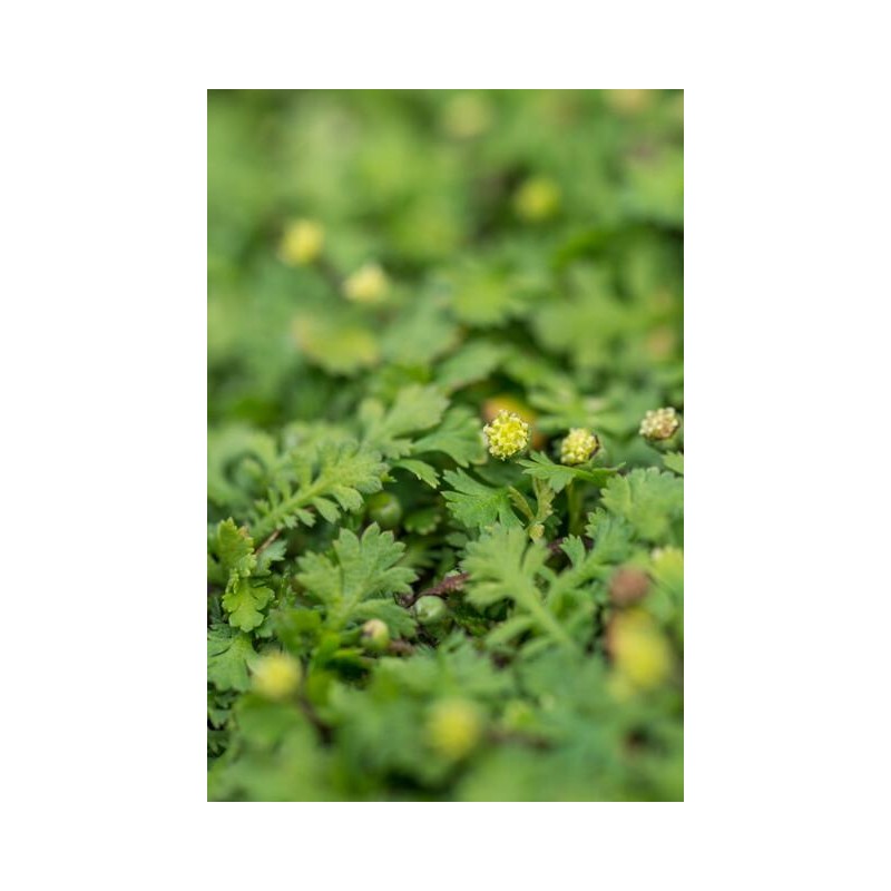 **Leptinella squalida** is a low-growing, evergreen plant perfect for use as groundcover. With its fine, fern-like leaves, it forms a dense, lush mat that thrives in shaded, moist areas. Ideal for growing between stones, under trees, or filling challenging corners in the garden, this plant provides a beautiful, green carpet year-round.