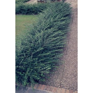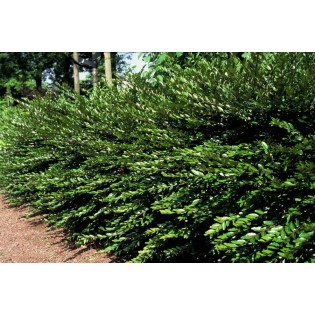 • Lonicera pileata, also known as the honeyberry or evergreen honeysuckle, is a low-maintenance, evergreen plant that quickly forms a dense mat. With its glossy leaves, it remains attractive year-round. Ideal for covering bare spots, slopes, or as a low hedge. This hardy plant thrives in both sun and shade and requires minimal care. It also attracts butterflies and bees, making it a great choice for a biodiverse garden. Perfect for those looking for a beautiful, green space with little effort.