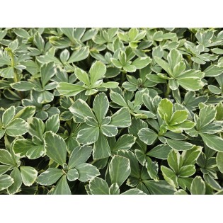 • **Pachysandra terminalis 'Variegata'** is a hardy, evergreen ground cover with striking, cream-white variegated leaves that add color and texture to your garden year-round. This fast-growing plant forms a dense mat and is perfect for shaded areas, such as under trees, in borders, or in hard-to-fill spots. **'Variegata'** is low-maintenance, resistant to many diseases and drought, and provides a fresh, vibrant look in the garden, even during the winter months. It’s an excellent choice for those seeking a durable, colorful ground cover.