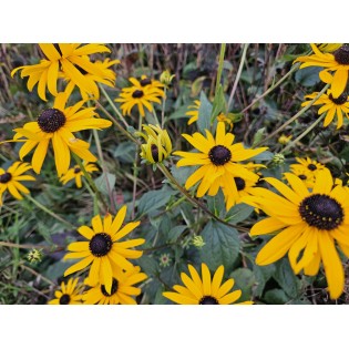 The **Rudbeckia fulgida 'Goldsturm'**, commonly known as Black-eyed Susan, is a stunning perennial with vibrant golden-yellow flowers and a dark center. Blooming from July to October, it attracts bees and butterflies, adding a lively summer touch to your garden. Perfect for borders, low-maintenance, and highly winter-hardy. Thrives best in a sunny spot!