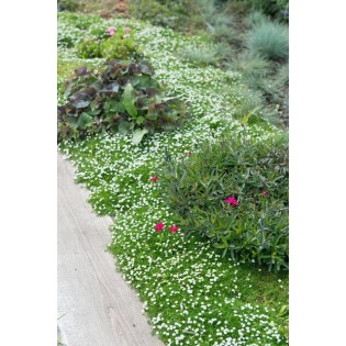 **Sagina subulata**, also known as Irish moss, is a low-growing, evergreen ground cover with fresh green, moss-like foliage. This plant forms a dense carpet and blooms in late spring and summer with tiny white flowers. Ideal for filling spaces between stepping stones, in rock gardens, or as a lawn substitute. **Sagina subulata** is low-maintenance and thrives in sun to partial shade, making it perfect for a soft, green addition to the garden.