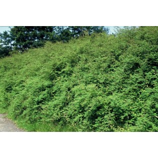 **Symphoricarpos ch. 'Hancock'** is a hardy shrub that stands out both in summer and autumn. It blooms with white flowers in summer, followed by an abundance of striking white berries in the fall. This compact plant is perfect for borders, hedges, or as a ground cover and thrives in both sun and partial shade. **'Hancock'** is low-maintenance, weather-resistant, and provides year-round visual interest, even during the winter months.