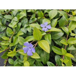 **Vinca minor 'La Grave'** is an evergreen ground cover with glossy, deep green leaves and vibrant purple flowers that bloom in spring and summer. This low-growing, fast-spreading plant is ideal for shady or partially shaded areas in the garden. **'La Grave'** is low-maintenance, drought-tolerant, and forms a dense mat, making it perfect for planting under trees, as a border plant, or in rock gardens.
