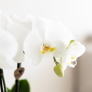 The orchid comes with 2 or 3 strong stems, depending on current availability. Since we work with living products, slight variations in the number of stems or flowers may occur.