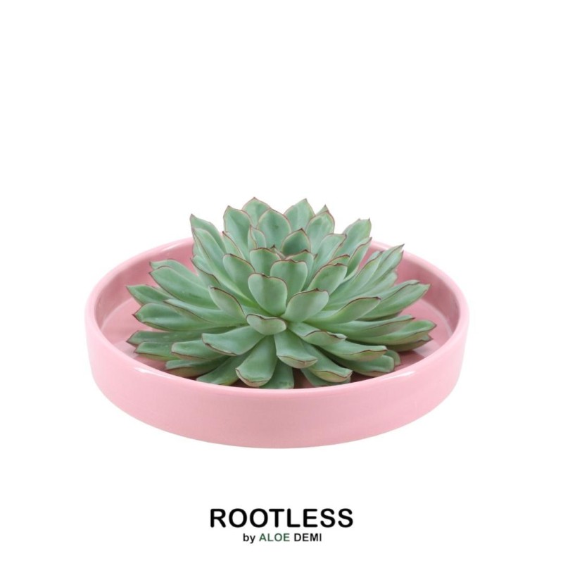 ROOTLESS succulents are grown in a culture pot and grow to the right size. When the plant's rosette is large enough, it is cut loose from the potting soil. A ROOTLESS can be an Echeveria, Aloe and Gasteria. Other names for ROOTLESS are cutting grease plant, cutting plant, cutting Echeveria and cutting succulent.