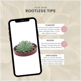 • ROOTLESS are succulents. And the name says it all: a ROOTLESS succulent has no roots. The plant consists of only a rosette. Moisture is stored in this heart of leaves. So you never give a ROOTLESS too much or too little water!