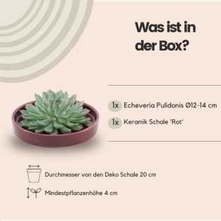 Rootless Succulent Echeveria Pulidonis In Bowl 'Red' Ø20 Cm - ↕5 Cm