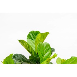• The Ficus Lyrata, also known as the fiddle leaf fig, features large, glossy leaves that have a unique, fiddle-like shape. The leaves are dark green and can reach a significant size, giving the plant a dramatic appearance. This plant can grow up to 2 meters tall and has a sturdy, upright trunk.