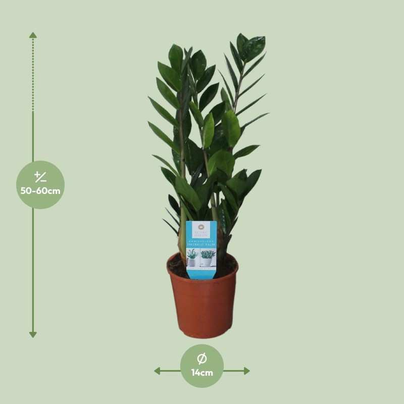 The Zamioculcas is an easy-to-care for plant that thrives in half-shadow or shadowed areas. It requires watering once every 8-10 days, allowing the soil to dry out between waterings. The plant prefers a well-draining soil mix, such as a blend of potting soil, peat moss, and perlite. Fertilizing the Zamioculcas is recommended every 2-3 months during the growing season with a balanced liquid fertilizer. Remember to follow the instructions on the fertilizer package for the correct dosage and application method. With these simple care instructions, the Zamioculcas will flourish in your home or office space.