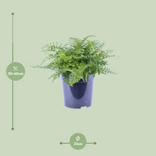 Introducing Asplenium Parvati, an exquisite indoor plant with roots tracing back to its origin in Southeast Asia. Also known as Spleenwort, this captivating foliage delights with its lush green fronds and delicate texture, effortlessly enhancing any interior space. Its compact size makes it perfect for small living areas or offices, bringing a touch of natural beauty to your surroundings. As an description, Asplenium Parvati, the delightful indoor Spleenwort, will surely enchant plant enthusiasts seeking to elevate their indoor decor with a touch of Southeast Asian allure. The Asplenium Parvati, a stunning addition to any indoor garden, requires a spot in half-shade to flourish. With its vibrant green foliage and delicate fronds, this plant thrives in partially shaded areas. To keep it healthy and vibrant, give it a thorough watering once a week. Its care instructions will ensure that this Asplenium remains the centerpiece of your space, adding a touch of natural beauty and tranquility.Fun Fact about Asplenium Parvati: This enchanting fern, Asplenium Parvati, captures hearts with its graceful fronds and vibrant green hue. Commonly known as the "Parvati Fern," it adds a touch of elegance to any space, transporting you to a lush tropical paradise. While this beauty is visually appealing, it's important to note that Asplenium Parvati is purely for decorative purposes and not intended for consumption. So, resist the temptation to nibble on its leaves instead, let this delightful fern enhance your surroundings and bring a lively ambiance to your living space!- Asplenium Parvati, also known as Spleenwort, is a popular plant with a pot size of 21 cm.- This beautiful plant can reach a height of around 40 cm, making it a great choice for adding greenery to any indoor space.- Asplenium Parvati thrives in a spot with partial shade, making it perfect for areas in your home that receive indirect sunlight.- Interestingly, the Asplenium genus consists of around 700 different species, making it one of the largest fern genera.- Fun fact: Some species of Asplenium are known to have medicinal properties and have been used in traditional medicine for centuries.