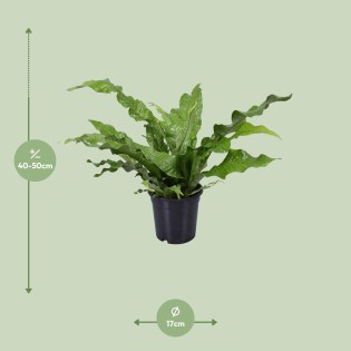Introducing the Kangaroo fern, also known as Microsorum diversifolium. This exquisite indoor plant originates from the lush rainforests of Southeast Asia. With its delicate fronds resembling the hopping motion of kangaroos, it adds a touch of nature's beauty to any space. Its hardy nature makes it ideal for indoor environments, requiring minimal care and displaying long-lasting vibrancy. Bring a piece of the enchanting rainforest into your home with the Kangaroo fern, a botanical wonder that effortlessly enhances your living space. Explore our collection and order now to enjoy the tranquility of nature indoors. Introducing Microsorum Diversifolium, an elegant and low-maintenance plant that effortlessly brings life and beauty to any space. This botanical gem thrives in a spot with partial shade, making it perfect for both indoor and outdoor environments. To ensure its vitality, remember to water it once per week, providing just the right amount of hydration. With its lush green leaves cascading delicately, this plant is a stunning addition to any home or office. Experience the joy of nurturing this Microsorum Diversifolium and enjoy its captivating presence. Order yours today and transform your space into a serene oasis.Did you know that Microsorum diversifolium, also known as Kangaroo Paw Fern, adds a touch of wild beauty to any room? This plant thrives in low light conditions, making it perfect for indoor environments. With its luscious, green fronds resembling a kangaroo's paw, it's a delightful addition to your decor. Just remember, while this fascinating fern may resemble an exotic culinary treat, it is purely for decoration. So, admire its gorgeous foliage but leave the tasting to the kangaroos!- Microsorum diversifolium, also known as Kangaroo fern, is a popular indoor plant with a pot size of 17 cm.- This fern typically grows to a height of around 45 cm, making it a suitable choice for smaller spaces or tabletop displays.- Ideal for spaces with partial shade, Microsorum thrives in a spot that receives indirect sunlight or dappled shade.- Fun fact: Microsorum is a genus of ferns that are commonly found in tropical regions, known for their distinctive fronds and ability to purify the air.- Incorporating Microsorum diversifolium into your home décor not only adds a touch of natural beauty but also promotes a healthier indoor environment.